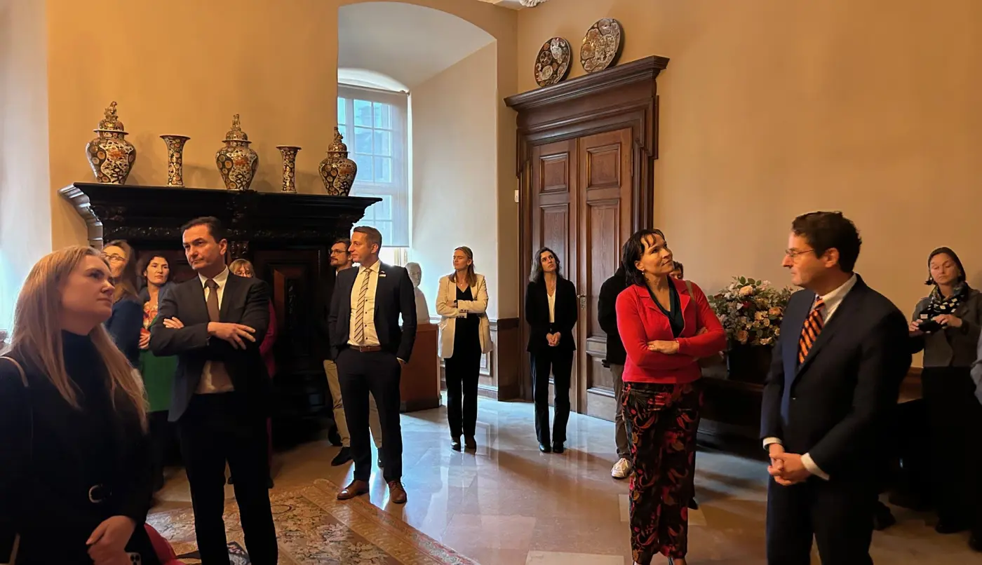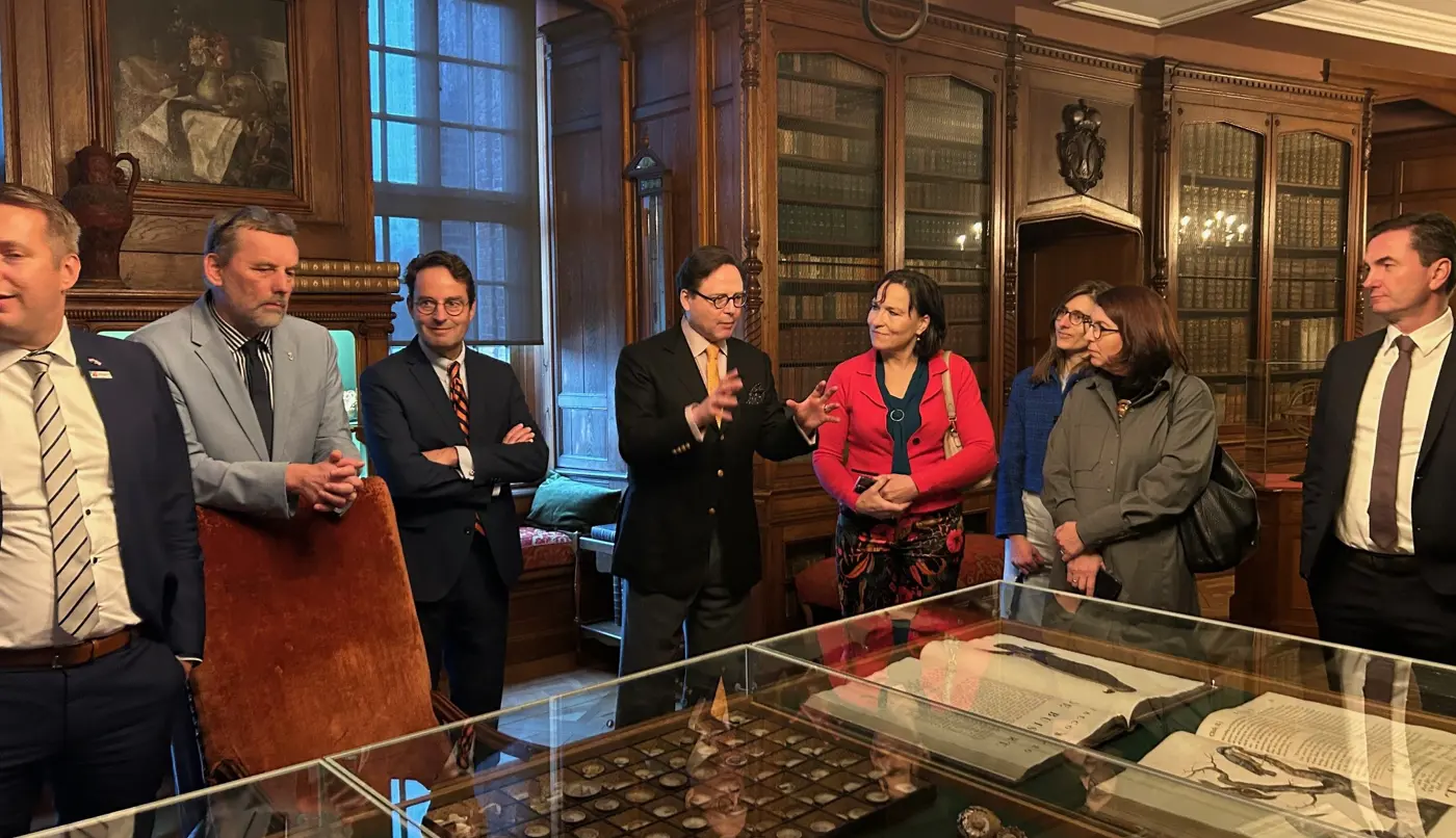 Ter afsluiting nam de kasteelheer Fürst zu Salm-Salm de aanwezigen mee voor een rondleiding door het kasteel De dag werd afgesloten met een rondleiding door het kasteel dat met meer dan 700 werken één van de grootste privékunstcollecties in Noordrijn-Westfalen is. Pronkstuk in de collectie is het schilderij ‘Diana badend met haar nimfen, met de verhalen van Actaeon en Callisto’ van Rembrandt uit 1634.
