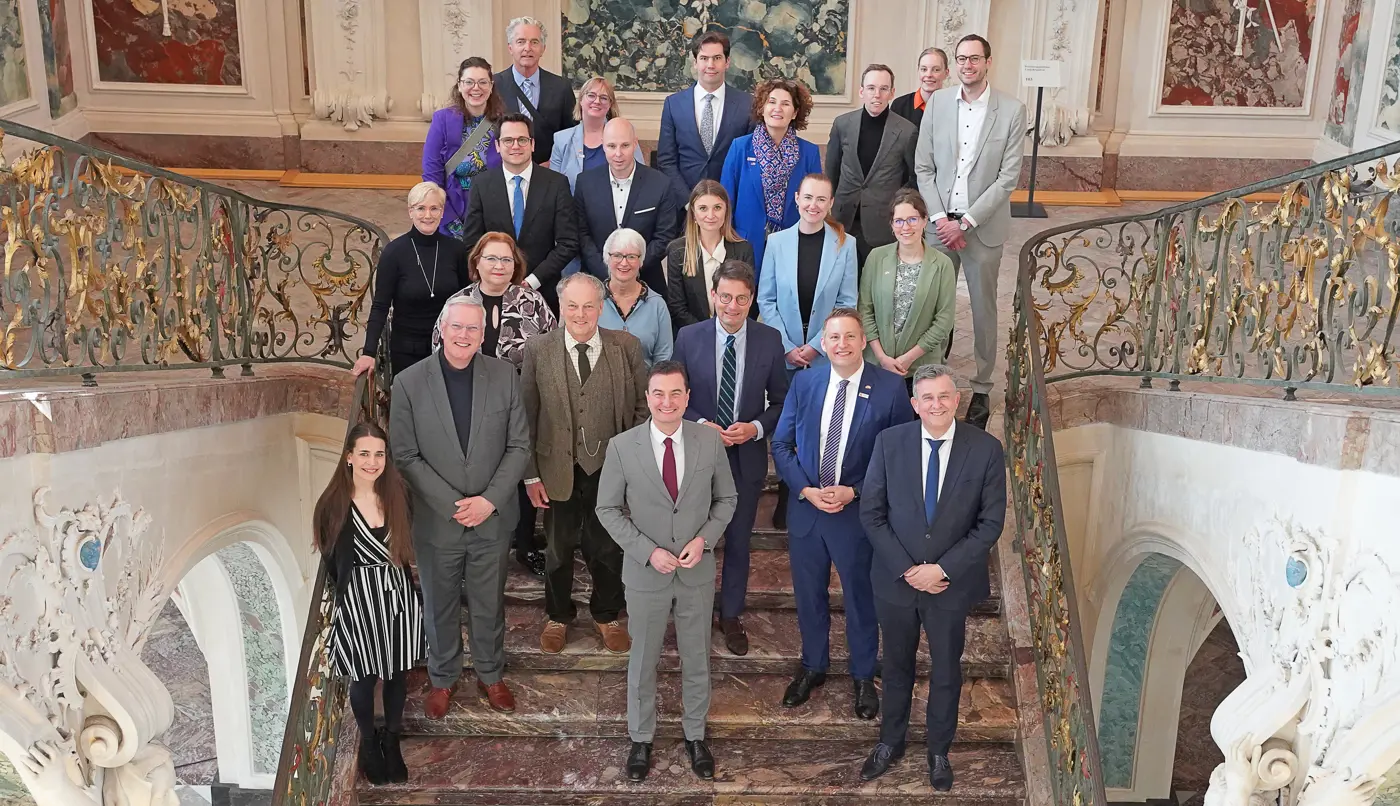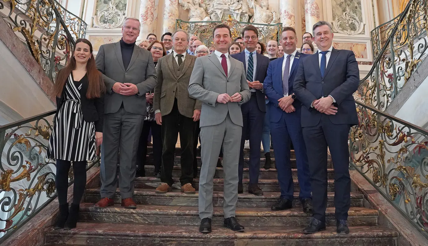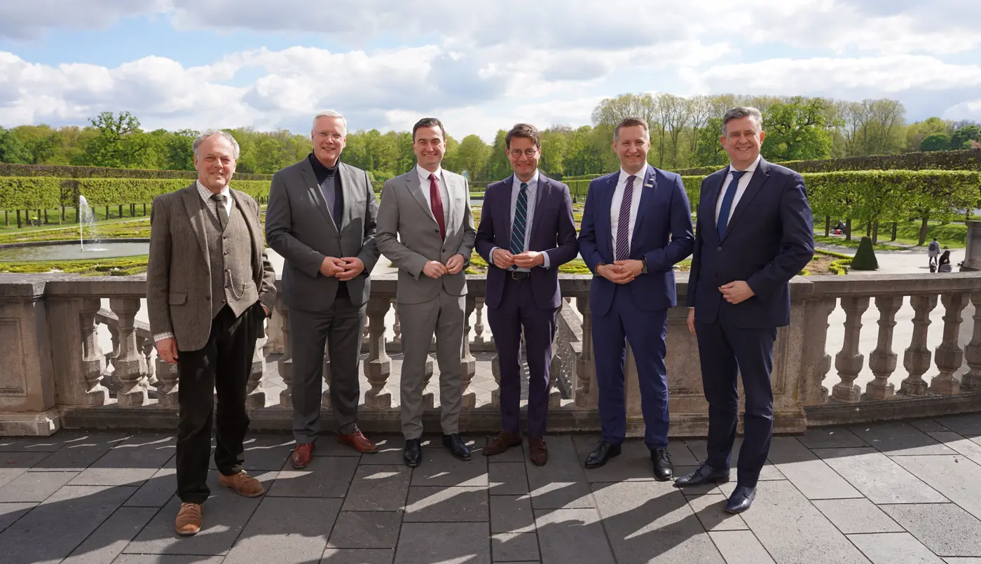 Het halfjaarlijkse 3+3-overleg vond op 18 april op een wel heel bijzondere locatie plaats: Schloss Augustusburg in Brühl, een van de belangrijkste Duitse bouwwerken uit de barok en rococo dat al 40 jaar op de Werelderfgoedlijst van UNESCO staat. Regierungspräsident van de Bezirksriegerung Köln, Dr. Thomas Wilk, verwelkomde hier zijn collega’s uit Münster en Düsseldorf, Andreas Bothe en Thomas Schürmann, alsmede de commissarissen van de Koning van Gelderland, Overijssel en Limburg, Henri Lenferink, Andries Heidema en Emile Roemer. De ontmoeting stond vooral in het teken van de ‘Strukturwandel’ in het Rheinisches Revier, intergemeentelijk samenwerking en ondermijning.
