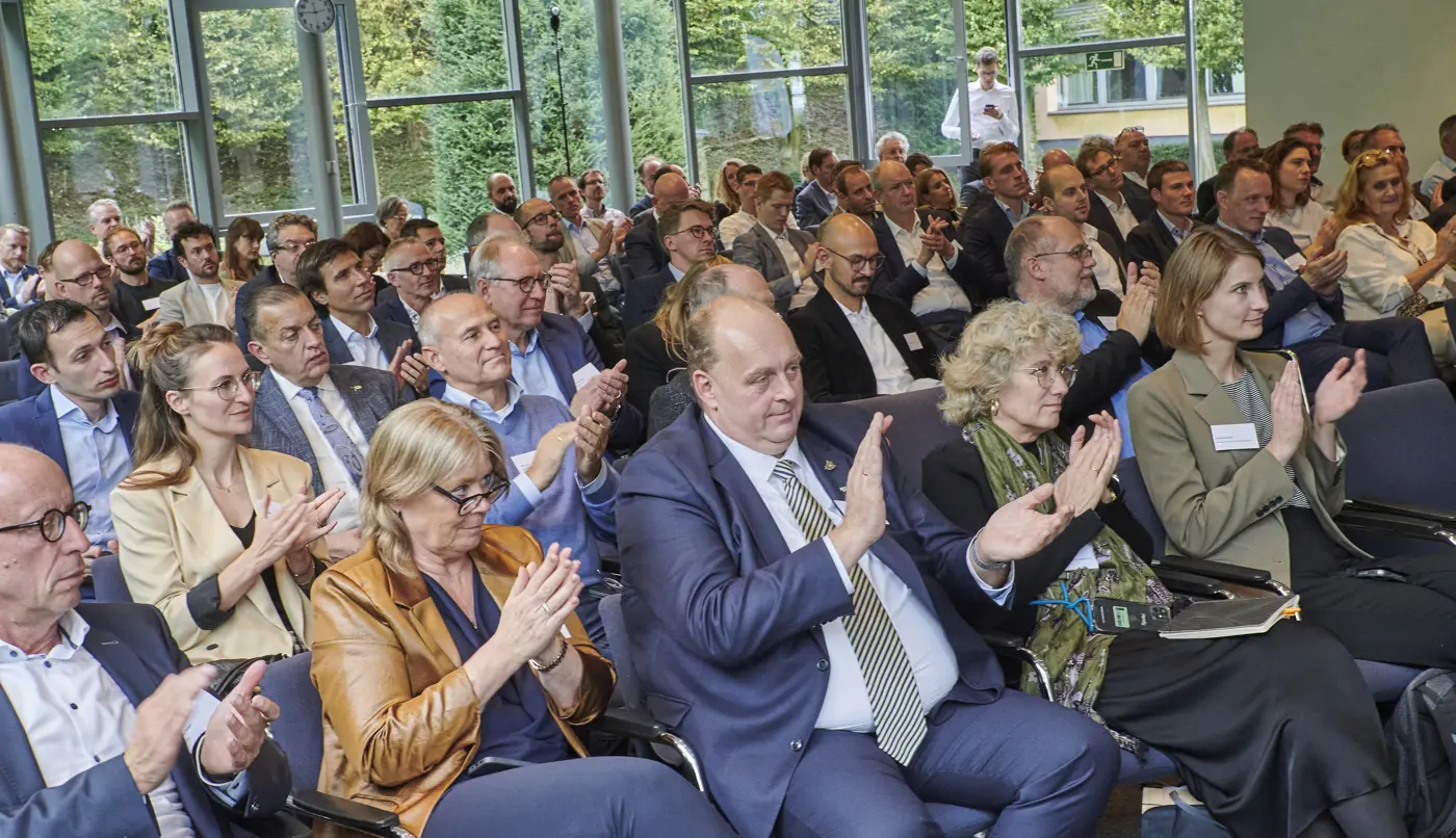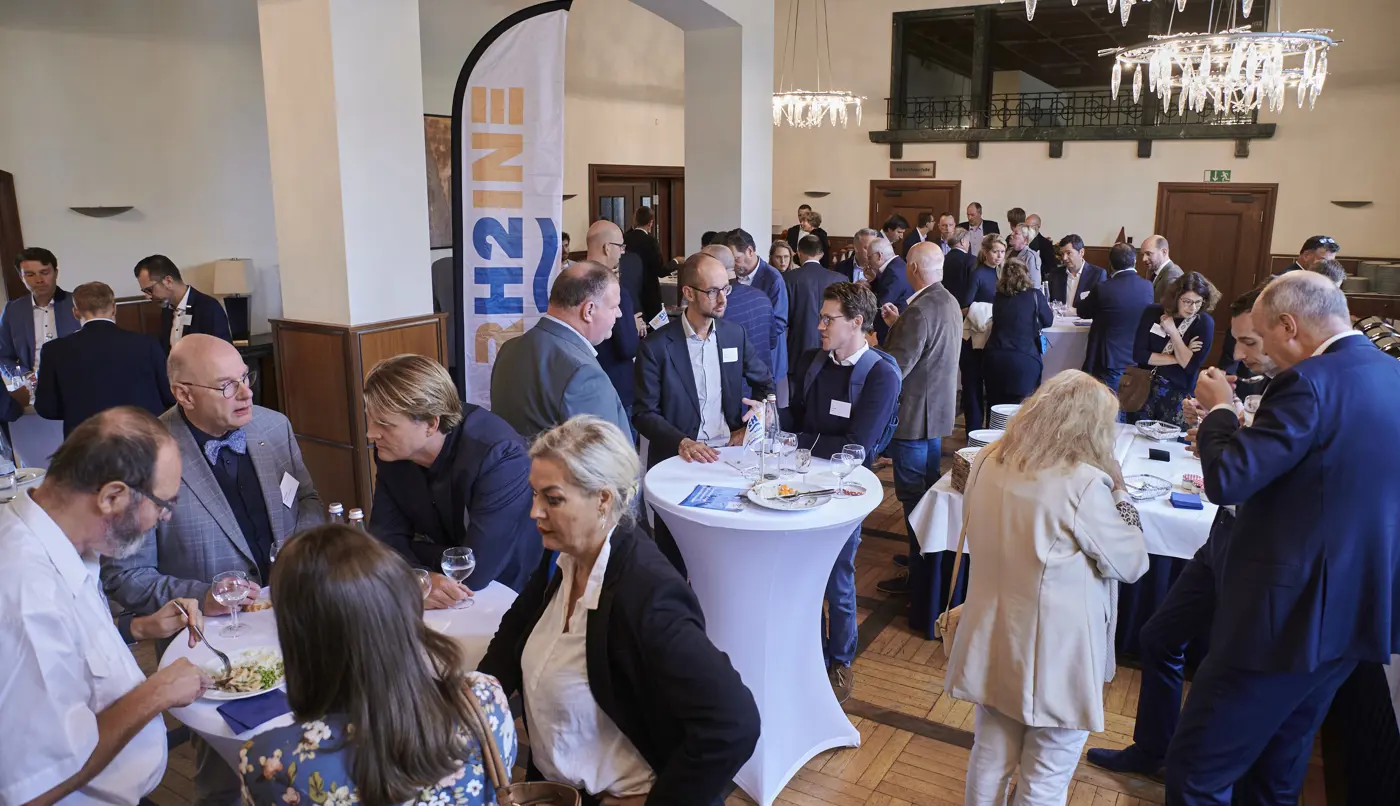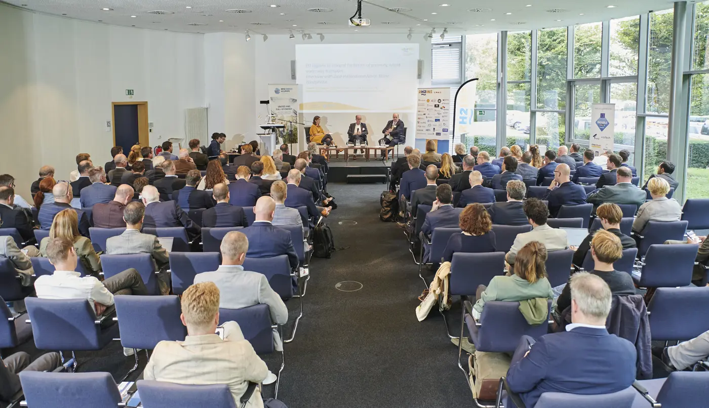 In het Haus der Unternehmer in Duisburg kwamen op maandag 30 september beleidsmakers, experts en spelers uit de industrie bijeen voor de jaarlijkse RH2INE-conferentie, georganiseerd door Provincie Zuid-Holland en NRW.Energy4Climate. In het groeiende netwerk werken inmiddels organisaties uit zes Europese landen samen. Hier worden de krachten gebundeld om de Europese binnenvaart koolstofvrij te maken. Sinds 2019 wordt er hard gewerkt om de opschaling van gestandaardiseerde waterstofoplossingen voor te bereiden. Gedeputeerde Frederik Zevenbergen van de Provincie Zuid-Holland en Michael Theben, hoofd van de afdeling klimaatbescherming bij het Ministerium für Wirtschaft, Innnovation, Digitalisierung und Energie van de deelstaat Noordrijn-Westfalen deelden updates over de stappen en uitdagingen om van waterstof de brandstof van de toekomst voor de binnenvaart te maken. Op de agenda stonden onderwerpen als de versnelling van de ontwikkeling van haveninfrastructuur en het waarborgen van financiering voor emissievrije schepen.