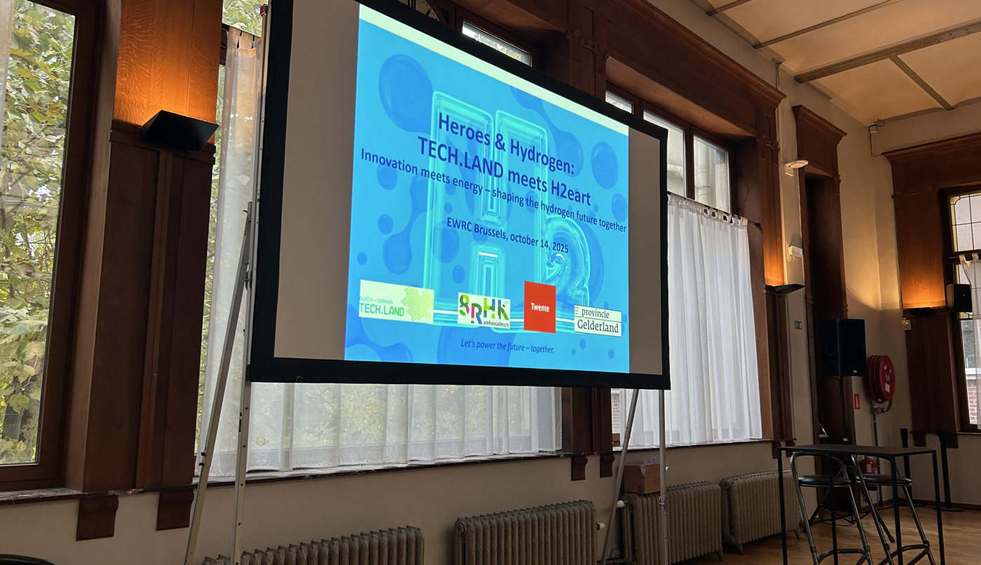 In het Belgisch Stripmuseum in Brussel organiseerde Provincie Gelderland op 14 oktober samen met de regio’s Achterhoek en Twente twee drukbezochte workshops. ’s Ochtends stond onder de titel Heroes & Hydrogen de vraag centraal hoe in het hart van Europa een grensoverschrijdend waterstofecosysteem kan worden opgebouwd. Het Nederlands-Duitse initiatief TECH.LAND en het project H2EART presenteerden hoe zij werken aan een duurzame Hydrogen Valley.