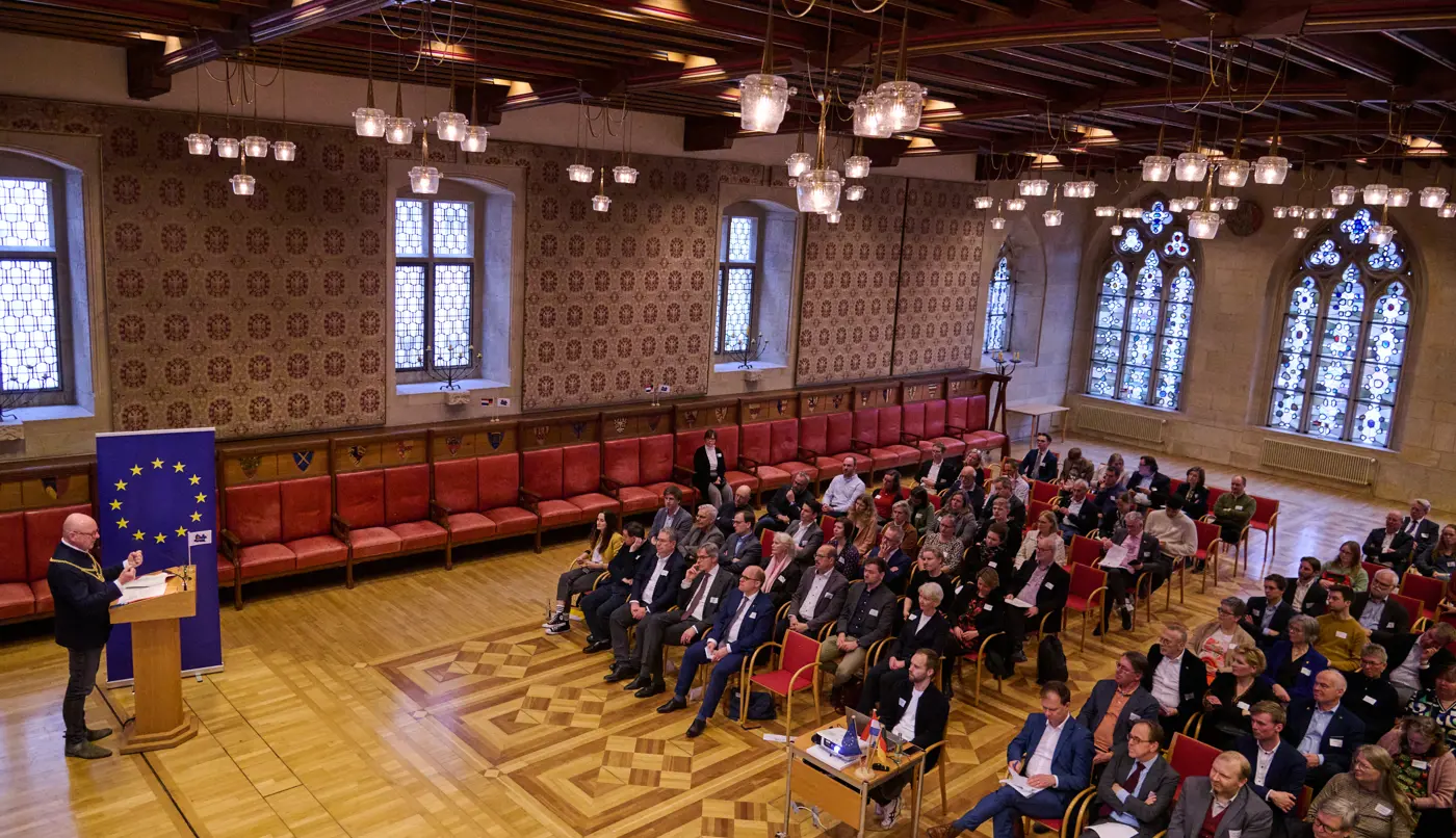 Oberbürgermeister Markus Lewe van Münster en EUREGIO-voorzitter Joris Bengevoord (burgemeester van Winterswijk) verwelkomden de aanwezigen. Prof. dr. Jacco Pekelder (directeur van het Zentrum für Niederlande-Studien van de Universität Münster) gaf vervolgens een lezing over Europa en de samenleving in het Europese verkiezingsjaar 2024.