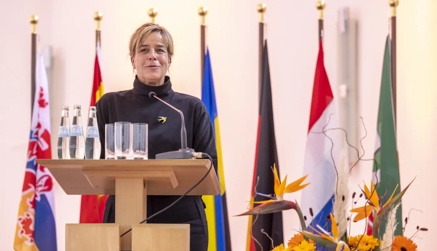 Dat onderstreepte ook Mona Neubaur, minister für Wirtschaft, Industrie, Klimaschutz und Energie van Noordrijn-Westfalen die sprak over tradities, die houvast geven en zekerheid bieden voor onder meer economische betrekkingen. “Nederland is de belangrijkste handelspartner van Noordrijn-Westfalen. In de handelsbetrekkingen en in de hoofden bestaan geen grenzen meer. Voor de economie en handel in Noordrijn-Westfalen is het van doorslaggevend belang samen te werken, te leren van elkaars verschillen en nieuwe dingen te ontwikkelen. Dat is de kracht van onze regio’s”, aldus Neubaur.