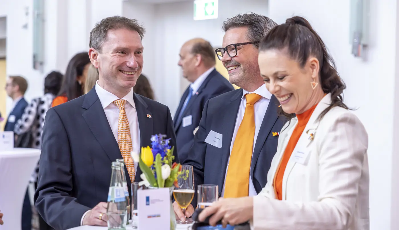 In lijn met de traditie werd het officiële gedeelte afgerond met het gezamenlijk zingen van het Nederlandse en Duitse volkslied, een ‘Leve de Koning’ en een driewerf ‘Hoera’. Aansluitend was er onder het genot van een hapje en een drankje volop gelegenheid tot netwerken.