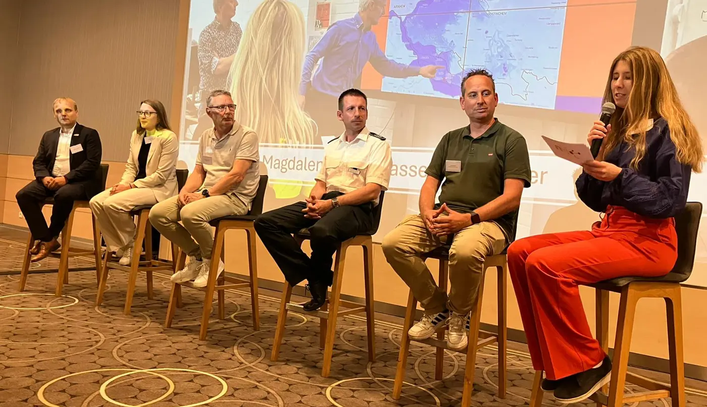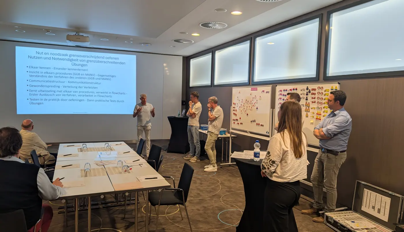 Een belangrijk onderdeel van het programma was de podiumdiscussie over rampenoefeningen, die op heel verschillende schalen – van op papier, tussen meldkamers onderling tot en met oefenen met alle betrokkenen in het veld – kunnen worden uitgevoerd, elk met eigen voordelen en uitdagingen. Onder meer werd stilgestaan bij de grensoverschrijdende hoogwateroefening ‘Magdalena’ in april van dit jaar in Nijmegen. Er werden ervaringen gedeeld over communicatie, logistiek en besluitvorming bij grensoverschrijdende crises.