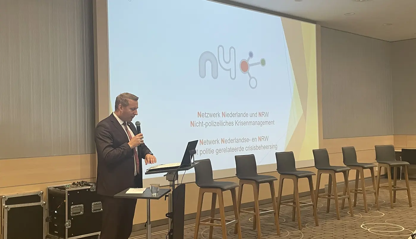 De centrale boodschap van de bijeenkomst was helder: rampen en crisissituaties stoppen niet bij de grens. Samenwerking tussen Nederland en Noordrijn-Westfalen is essentieel om voorbereid te zijn op noodsituaties. Duidelijke afspraken en een goede uitwisseling vooraf zijn noodzakelijk, zodat bij een incident geen tijd verloren gaat aan bureaucratie. Daarvoor zijn wel gezamenlijke oefeningen nodig. In zijn welkomstwoord benadrukte de Regierungspräsident van Düsseldorf Thomas Schürmann het belang van de N4-samenwerking en haalde hij herinneringen op aan de bijeenkomst in 2024, die in het Gouvernement te Maastricht plaatsvond. Hij refereerde daarbij ook aan de woorden van gouverneur Emile Roemer over grensoverschrijdend onderwijs en het belang van het 3+3-overleg tussen Nederland en NRW, waarmee ook bestuurlijke afstemming wordt bevorderd. Maar hij was er ook duidelijk over dat de kwaliteit van dit type samenwerking uiteindelijk op de werkvloer wordt bepaald. In deze samenwerking wordt datgene gerealiseerd wat in andere overleggen wordt besproken. De persoonlijke inzet van de medewerkers van de veiligheidsdiensten is daarbij een bepalende factor. Voor die enorme inzet bedankte hij de deelnemers in het N4-netwerk.
