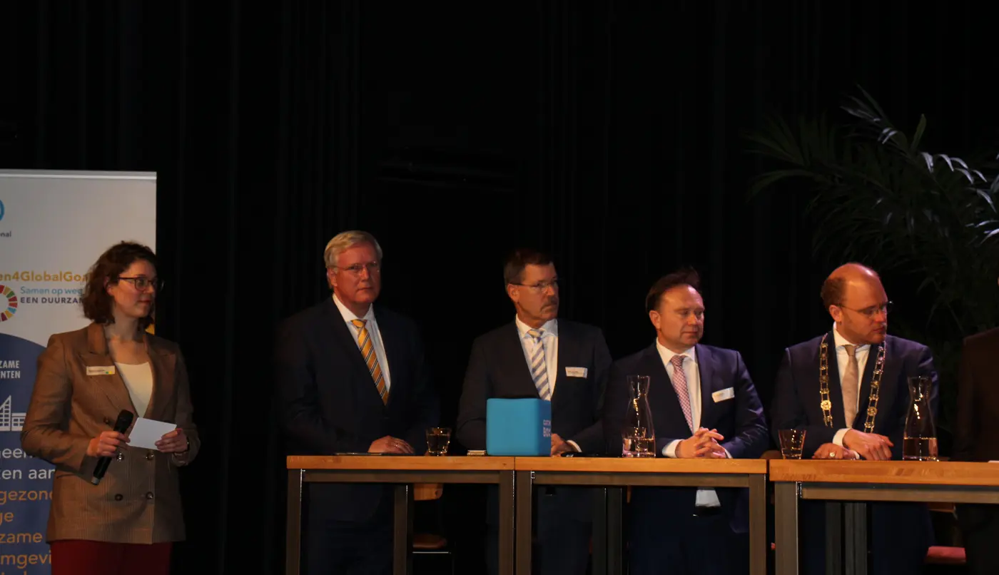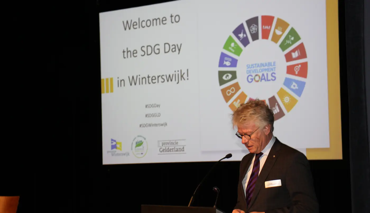 Op 27 januari kwamen op uitnodiging van de provincie Gelderland en de gemeente Winterswijk diverse internationale partners en overheden uit Noordrijn-Westfalen, Vlaanderen en Nederland bijeen voor de Sustainable Development Goals dag om afspraken te maken over duurzaamheid. Deze Sustainable Development Goals (SDG’s) hebben niet alleen betrekking op duurzaamheid op het gebied van klimaat, maar ook op het gebied van armoede, onderwijs en ongelijkheid. Het doel van de dag was van elkaar leren en het delen van best practices over hoe overheidsinstanties de SDG’s moeten inzetten om brede welvaart te realiseren. Ook werd er in het kader van duurzame partnerschappen een Memorandum of Understanding (MoU) tussen Oost-Nederland en het Münsterland ondertekend.