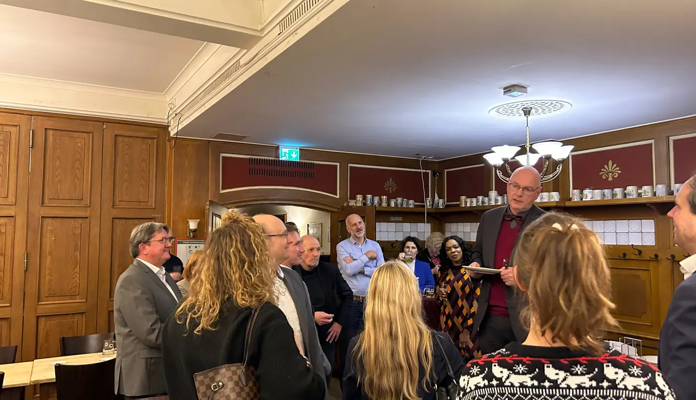 Op woensdag 29 november jl. was het weer tijd voor de jaarlijkse Sinterklaasborrel van Grenspost Düsseldorf. Bij brouwerij Im Goldenen Ring, midden in het centrum van Düsseldorf, stonden de Frikadellen, Mettbrötchen en pepernoten klaar voor een gezellige avond.