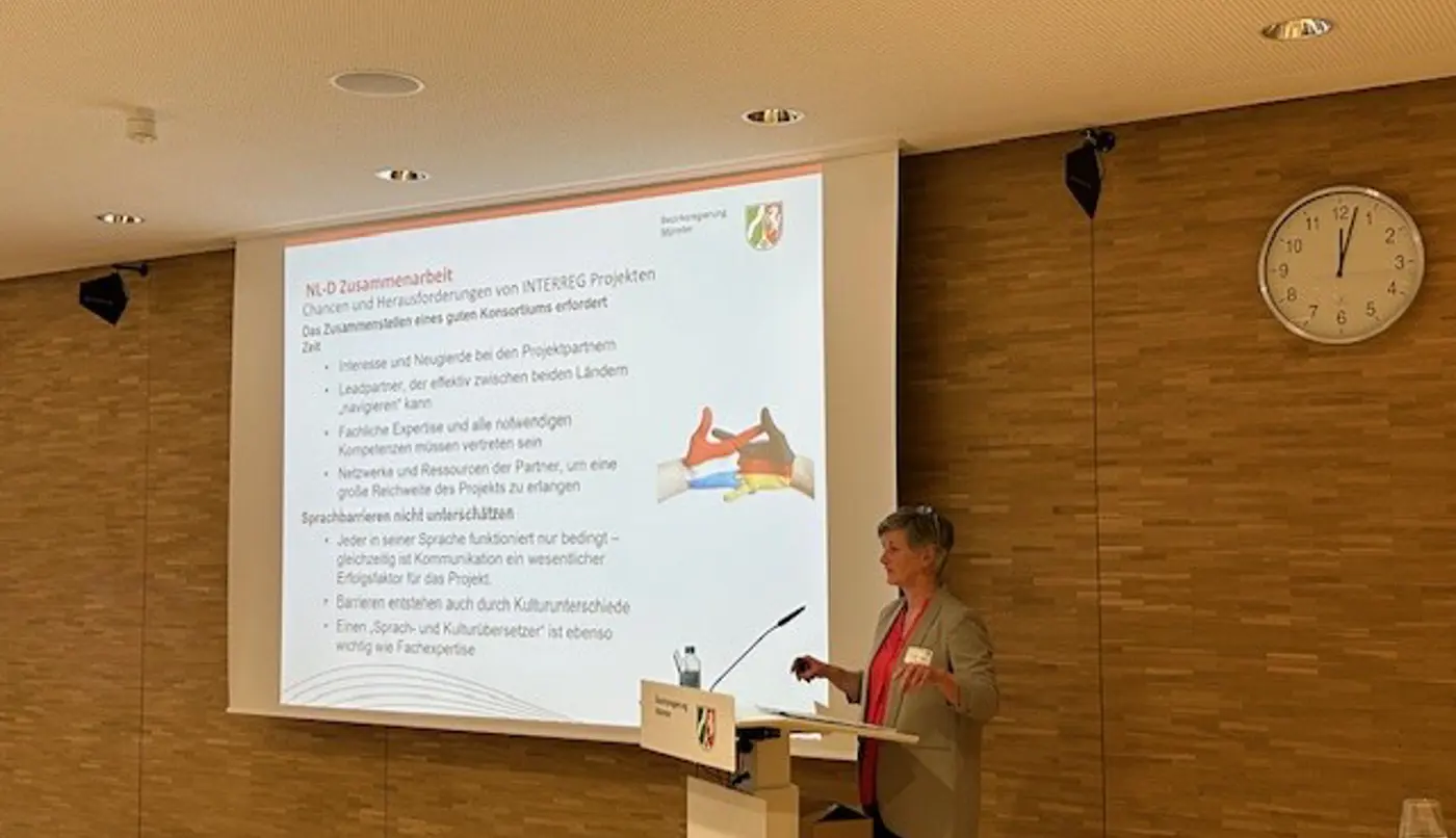 De sleutel tot succesvolle grensoverschrijdende samenwerking zijn persoonlijke contacten en nauwe banden. Om deze nog verder aan te halen en elkaar nog beter te leren kennen, ging een delegatie van Provincie Gelderland op 22 februari op werkbezoek bij de Bezirksregierung Münster. Vijfentwintig collega's van verschillende themateams en programma's, waaronder Ruimte en Landschap, Vitaal Platteland, Bureau Buitenland en Lobby, Sterk bestuur en de programma’s Water en Stikstof, togen naar de Duitse vredesstad. Zij werden vergezeld door een delegatie van de regio Achterhoek en de Fachhochschule Münster. Het motto van de dag: ‘Gewoon doen’.