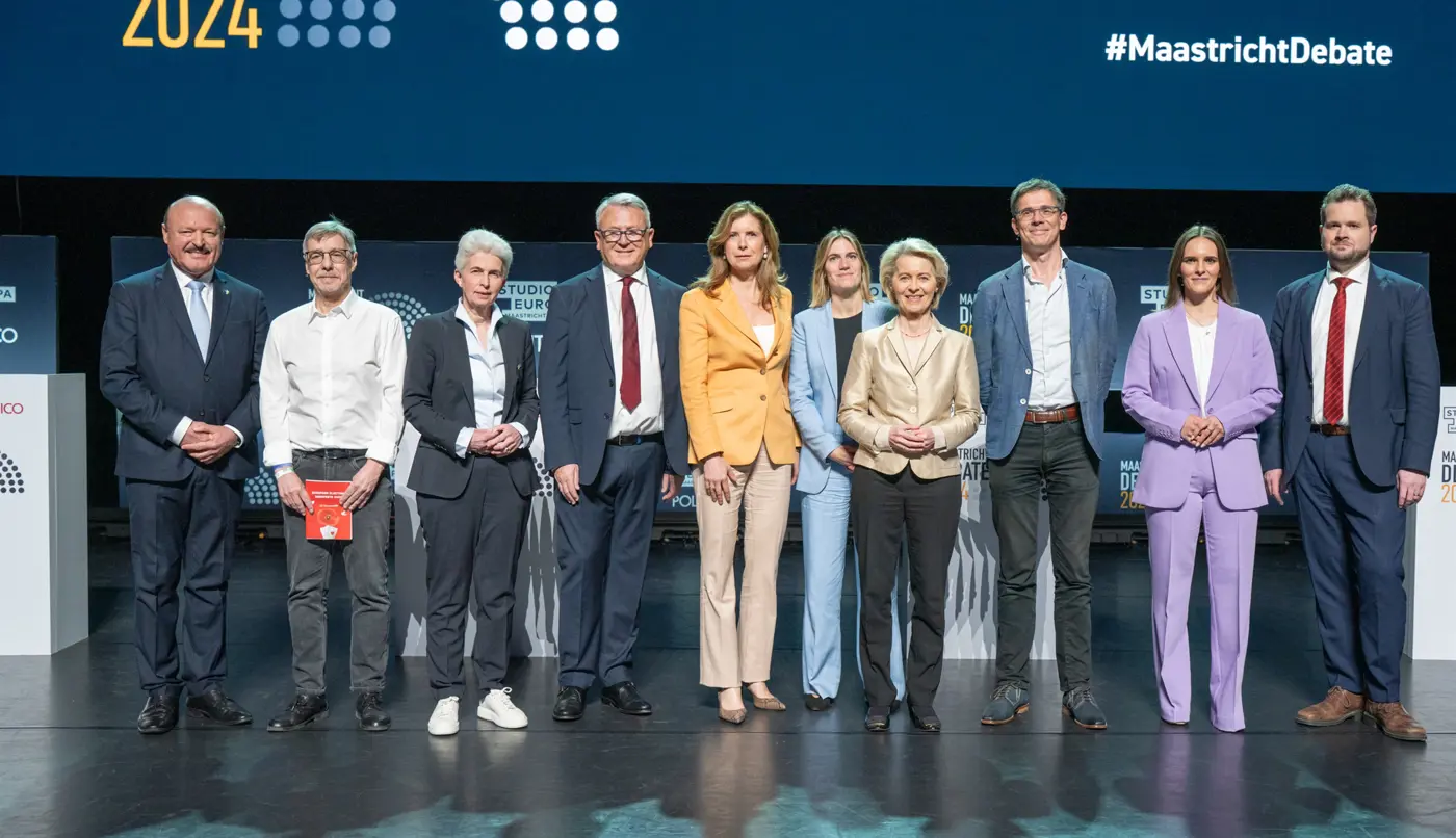 Het Theater aan het Vrijthof in Maastricht vormde maandag 29 april het decor voor het Maastricht Debate. Acht topkandidaten van grote Europese politieke partijen gingen hier in debat, in aanloop naar de Europese Verkiezingen die van 6 tot en met 9 juni gehouden worden. Het hoofddoel van het grootste verkiezingsdebat ter voorbereiding op de Europese Verkiezingen was het bereiken van jongeren. Namens Provincie Limburg was een delegatie met onder meer gouverneur Emile Roemer en gedeputeerde Elianne Demollin-Schneiders aanwezig, om de kandidaten te ontvangen.